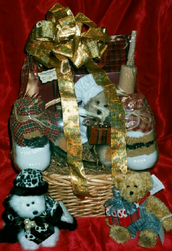Our Holiday Basket includes smoked sausage, assorted cheeses and coffees and teas, honey mustard, mint chocolates and a liquor decadence cake. $39.95