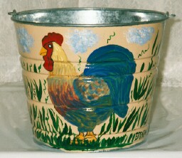 Along with custom decorative mail boxes, Brenda paints galvanized buckets and tubs with the same designs. Mail boxes are aluminum, in sizes standard, large, and commercial. Buckets are all sizes. Each item has an outdoor weather sealer. We also have children's rocking chairs. What makes these special is their ability to be taken apart for easy storage, and putting them together is a snap.